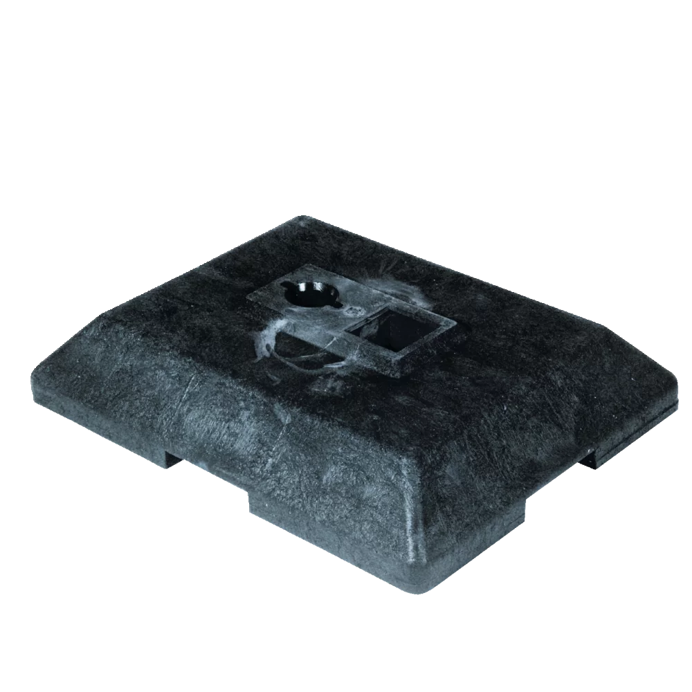 Kleine Fussplatte mit 15 kg Gewicht für z.B. Vario-Vierkantpfosten oder Kunststoff-Rundrohre, sowie für Vario-Pfosten.