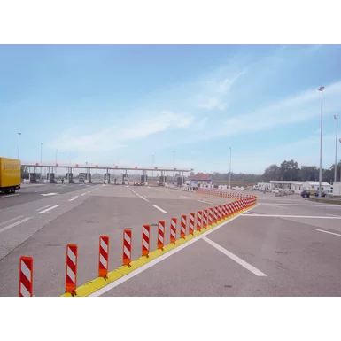 Das Anti-Rutsch-System (ARS) an der Unterseite der Leitschwelle sorgt für ausgezeichnete Haftung auf der Fahrbahn. Es lässt sich bei Abnutzung leicht, ohne großen Aufwand, austauschen.