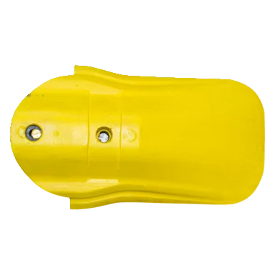 Das abgeschrägte Endstück B für Leitschwellen, in gelb, enthält eine Sicherungsschraube. Es ist wie die Leitschwelle selbst aus Recyclingmaterial und mit dem Anti-Rutsch System ARS ausgestattet.