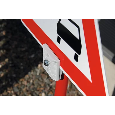 • zum Anklemmen ungelochter Verkehrszeichen an Vierkant- und Rundrohre