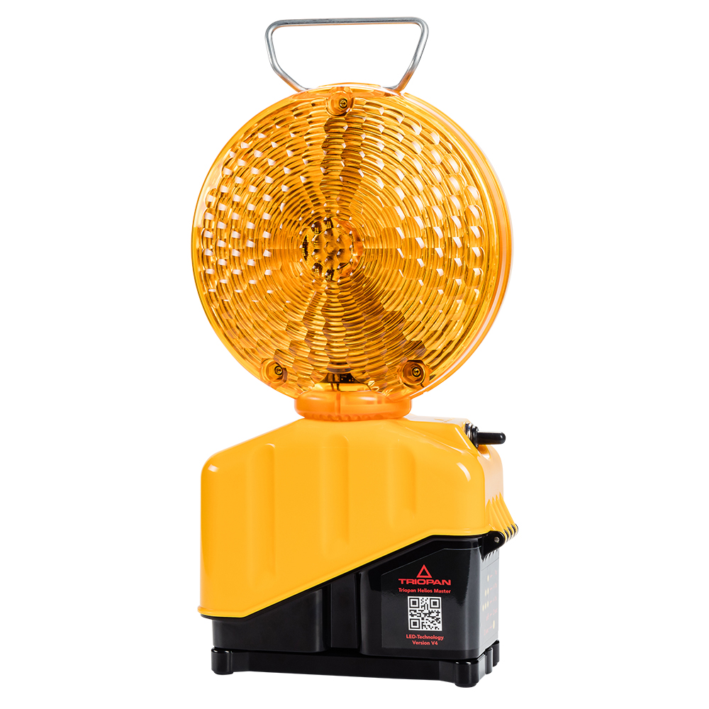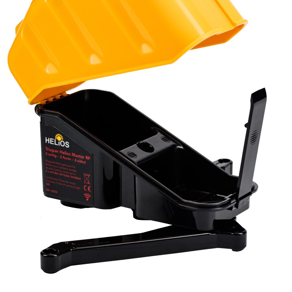 Die Triopan Helios Master ist eine LED Blitzleuchte, für die temporäre Signalisation. Sie wird manuell bedient und mit handelsüblichen Zink-Kohle-Batterien versorgt und durch einen Mikroprozessor gesteuert. Optionale Klappfüsse sorgen für mehr Stabilität. Mehrere Funktionalitäten können eingestellt werden. Das Batteriegehäuse ist ohne Werkzeug innert Sekunden geöffnet.